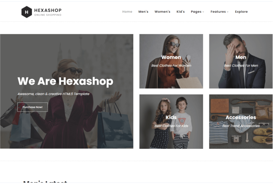 Hexashop is a free HTML & CSS template for ecommerce website. This creatively open and extraordinary template is built with the Bootstrap 4 framework.